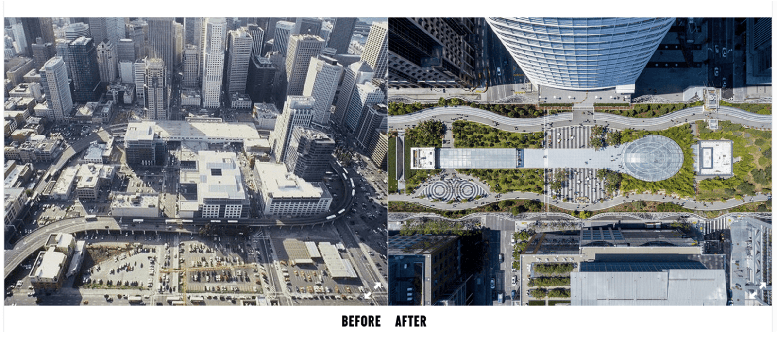Who doesn't love a good before and after highlight? The Salesforce Transit Center Park is a rooftop park that's replaced a parking lot with a habitable area for birds, a green space for people to enjoy, and stormwater filtration. According to the Landscape Architecture Foundation, the park reports 47 observed bird species, 4 of which were endangered or a species of concern.