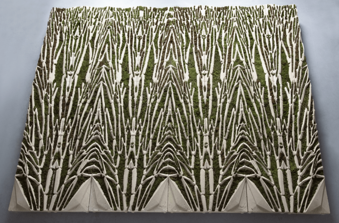 There’s even moss that can grow within the concrete, like these bioreceptive concrete panels from the BiotA Lab, and creators Javier Ruis, Richard Beckett, and Marcos Cruz. These magnesium phosphate concrete panels encourage growth of moss, algae, and lichens. And these microorganisms reduce air pollution and are resilient as well.